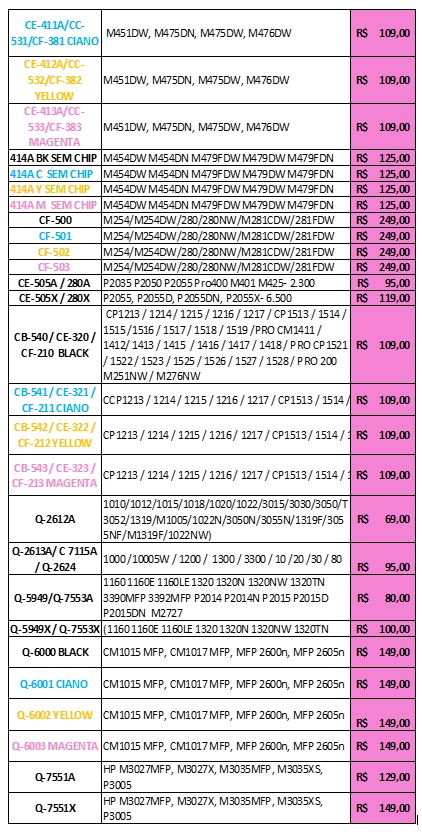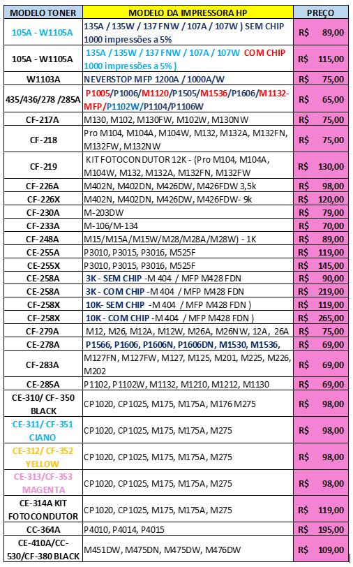 TEMOS OUTROS MODELOS DE TONERS E CARTUCHOS PARA VENDA, NOS CONTATE ATRAVÉS DOS TELEFONES: 55 3026 1122 / 3217 6977